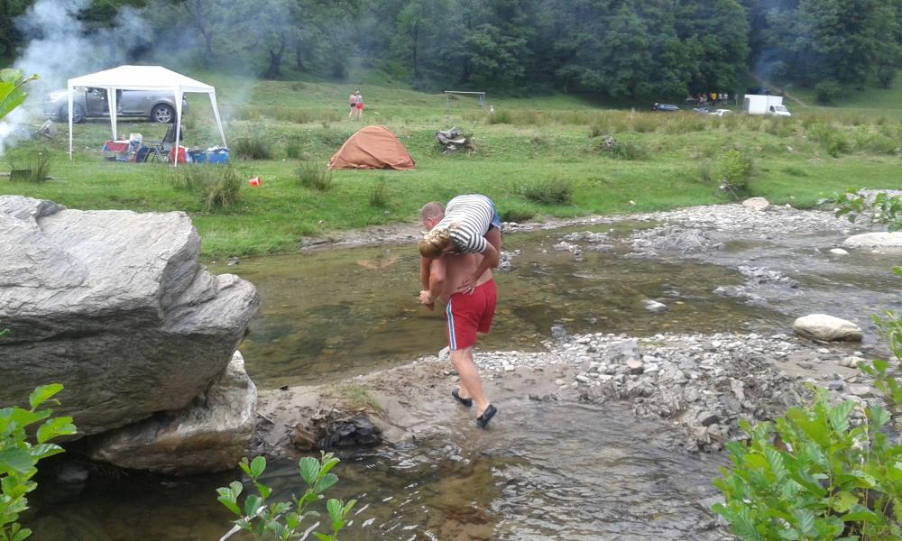Cum se iese din sat se vad locurile de campare. Cine ajunge la sfarsit de saptamana, o sa vada corturi sau rulote pe malul raului.