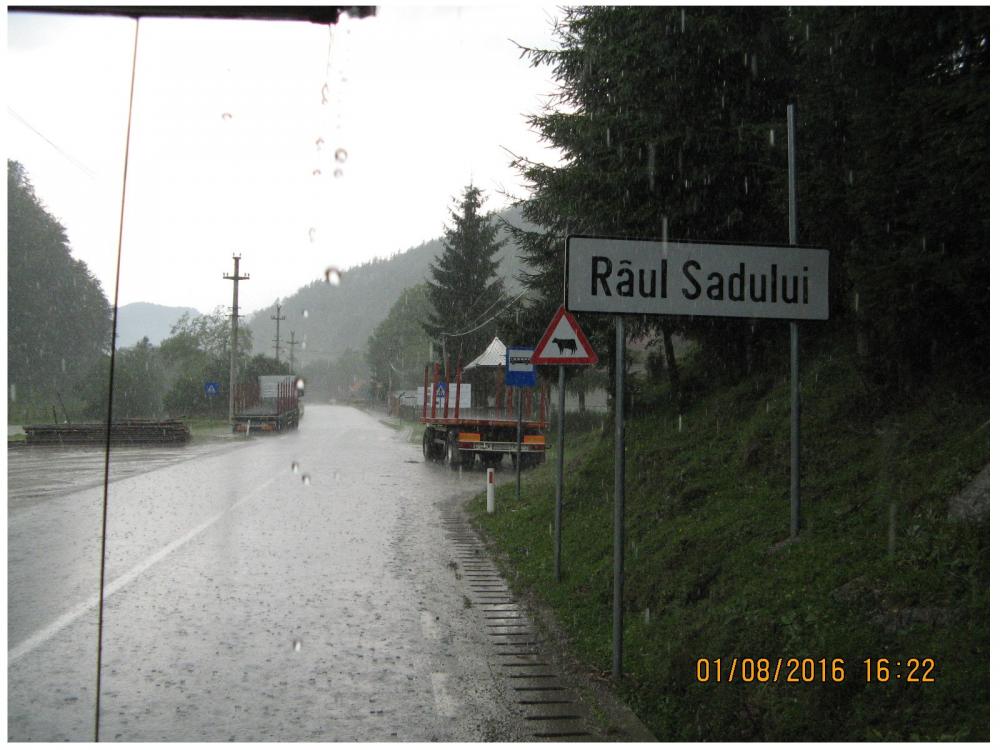 La pas si pe ploaie torentiala, am intrat in localitatea Riul Sadului. Valea frumoasa, cu multe pensiuni, dar locatiile de campare putine..multe curti ingradite.