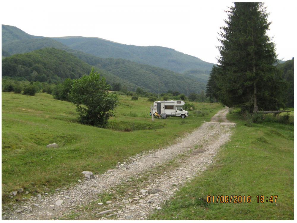La numai 300 m de sosea, am gasit dupa o " cercetare " pe jos, asa cum este logic...o poienita ideala, dar numai pt un singur atelaj, maxim doua, unde am si inoptat.