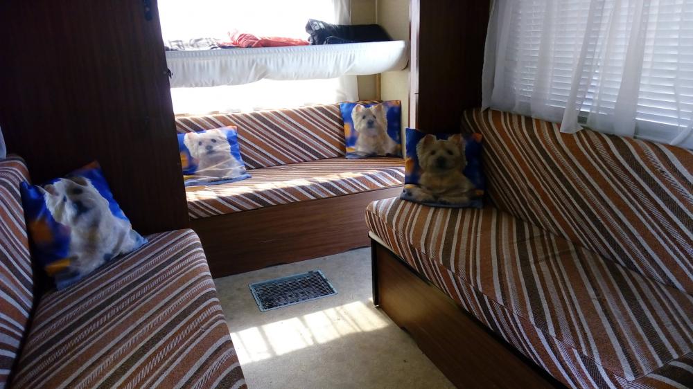 Numar locuri de dormit 4-5, spatii de dormit 4 (2 pe mijloc care se pot transforma si intr-un pat mare pentru 3 persoane si 2 paturi supraetajate),