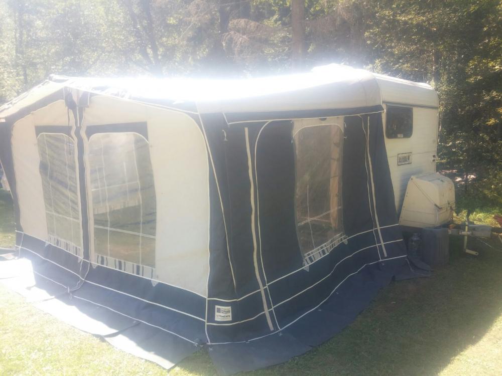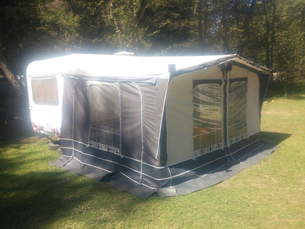 Cort exterior Tencate cu 4 fete detasabile, cate una in pe laterale cu plasa de tantari si 2 in fata + fusta dea lungul rulotei.