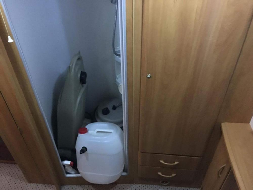- baie separata cu wc electric si golire exterioara, cabina de dus cu toti pereti din plastic si un spatiu de depozitare haine generos + incalzire ( gura de vent )