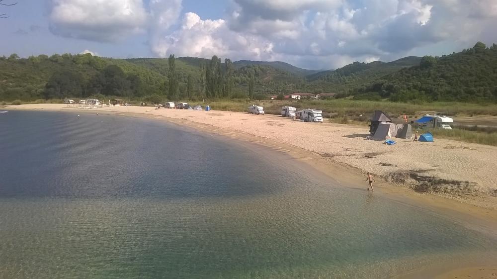 Despre drum: Urci si cobori de inebunesti, dacavesti cu o masina mica nu prea puternica stai cu ochi pe temperatura apei ca ochii pe butelie. Groaznic. Dar cu audi 80 b4 1.9 tdi si rulotavEriba Troll am ajuns cu bine. 1000 km , consum 7 % cu AC aproape tot timpul. Prima tintavera plaja Agios Ioannis dar accesul era interzis, perimwtrul este imprejmuit deci poate fi taiata de pe lista locatiilor off camping. Amplecat maibdeparte spre plaja Azapiko. Am ajuns pe la 19.30. Pe prima plaja erau deja cam 6 campere. Pe cealalta plaja maine ma duc in vizita. La orele stiute multi tantari de nu puteai sta afara. Pe la ora 22 am iesit afara, tantariivau disparut, cateva musculite inca mai erau prezente, am facut o baie in mare dar fara xuraj de a ma aventura in larg pe intuneric. Mai stam o noapte aici apoi plecam spre Toroni. Apa maine caut. Maine ma aprovizionez si cu apa pentru dus, incalzita la soare tocmai buna pt dusul portabil la 12 v.