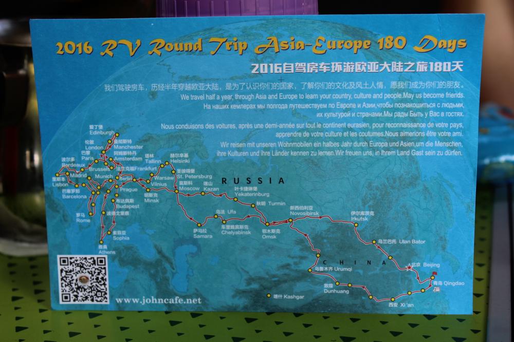 In ziua urmatoare am plecat spre Polonia in jurul orei 10 :00 cu oprire in Camping 123 Varsovia,un traseu de 750 de Km. Camping-ul 123 este un camping curat nu foarte aglomerat tinand cont ca este un camping de tranzit la marginea orasului de unde poti vizita Varsovia . Cel mai interesant moment al acestei etape, a fost intalnirea in camping cu 4 echipaje din China plecate din orasul QINGDAO intr-o excursie de 180 de zile .( avem si o poza atasata mai jos cu traseul lor ). POATE O IDEE DE UN NOU CONCEDIU !!! 8) 8) 8) 8) 8) .