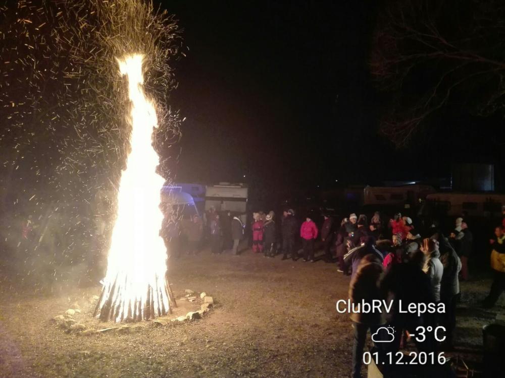 La focul de tabara ( joi 1 dec ) , s-a baut vin fiert ”din toate judetele ”, s-au mancat diverse de la ciorba de fasole pana la tocanita , pomana porcului s.a.m.d. toate facute afara de rulotisti , care n-au simtit frigul si au dansat chiar in aer liber .