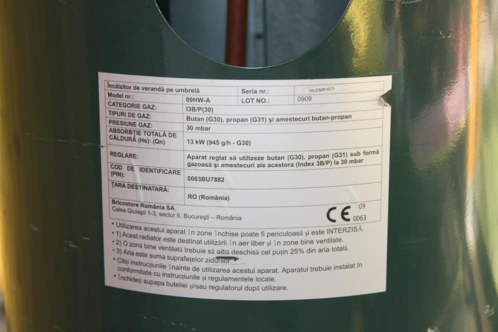 2. Incalzitor terasa gaz 13KW, furtun si ceas butelie inclus.
