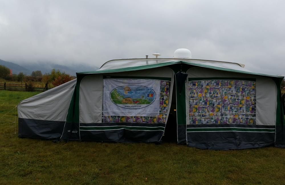 - 2 corturi, unul pe toata lungimea rulotei si unul mic model porch,
