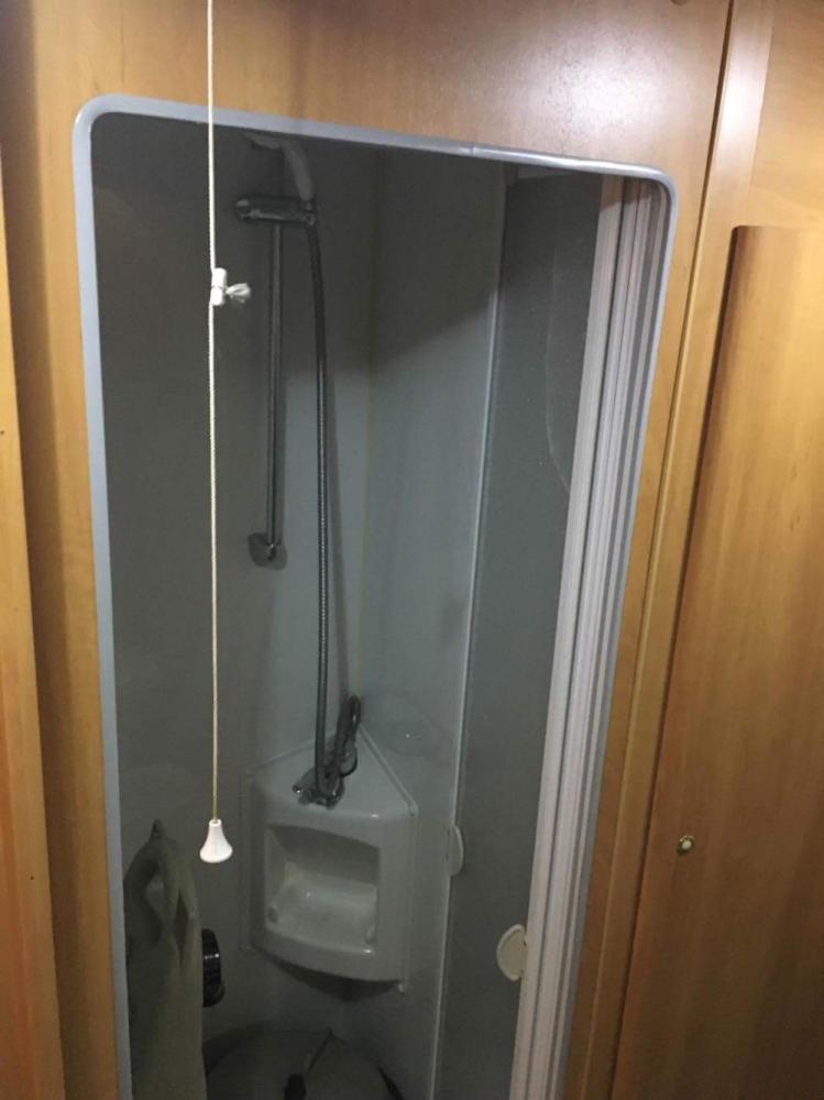 - baie separata cu wc electric si golire exterioara, cabina de dus cu toti pereti din plastic si un spatiu de depozitare haine generos + incalzire ( gura de vent )