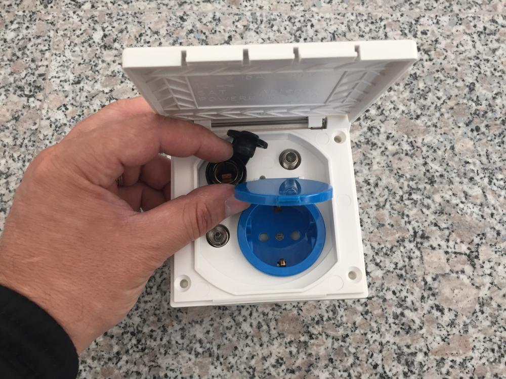 6. - Priza externa SCHUKO 220V, mini 12V, antena TV, antena satelit; culoare alb (este noua nefolosita) o puteti veda si aici http://www.motorhome.ro/electrice.html pret: 80 lei
